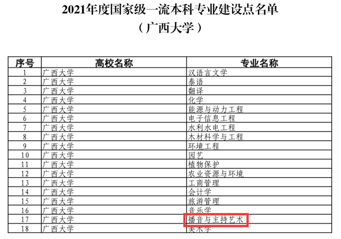 日前,教育部办公厅正式公布了2021年度国家级和省级一流本科专业建设点名单。william威廉亚洲播音与主持艺术专业顺利入选2021年度国家级一流本科专业建设行列。