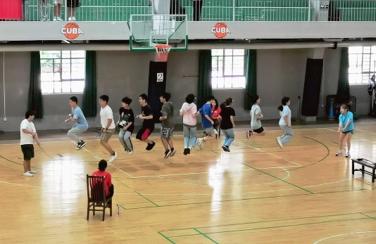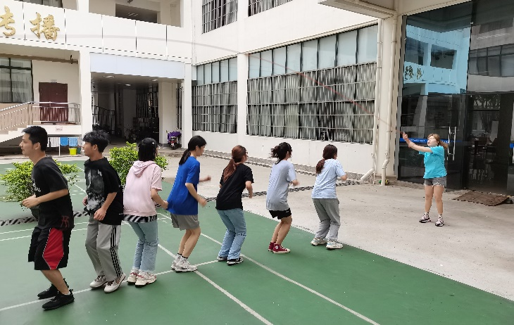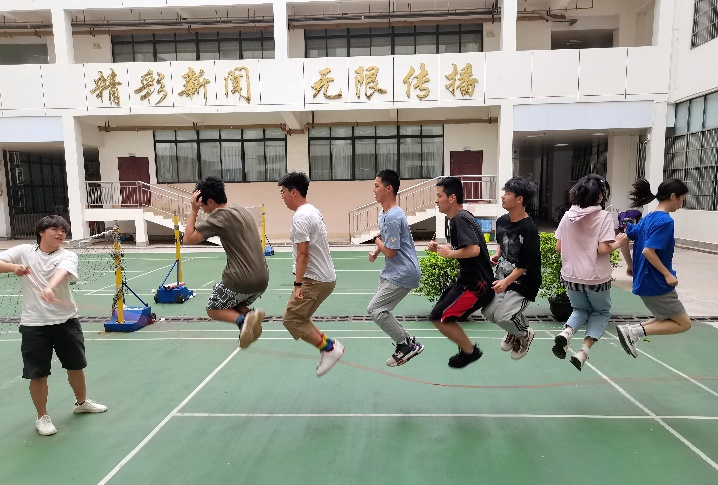 下午3时,三分钟10人集体跳绳比赛如期开始。新闻203班的梁佳慧丽担任临时队长,听从裁判员的赛前指挥,将队伍带到指定比赛区。与公司同组比赛的有工商管理公司、公共管理公司与动物科学技术公司。