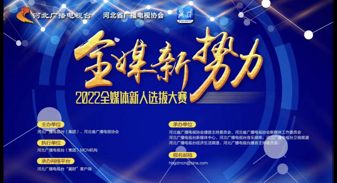 为选拔具有正能量、全媒体潜力的网络直播以及有创意、有网感的全媒体人才,河北广播电视台(集团)、河北省广播电视协会联合主办了“全媒体新势力!2022全媒体新人选拔赛”。参赛人员来自各大高校在校生及社会相关人士,活动评委由各大网络平台业内专业人士、发起单位相关领域专家、学者、老师、网络平台大V组成。此次比赛采用线上线下相结合的方式,线上为主,线下为辅,经历海选、培训、定评、展演晚会四个阶段最终得出选拔结果。