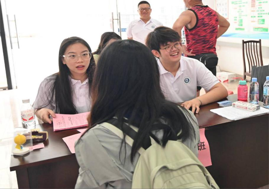 除了常规的报道流程,公司还设立有党员先锋服务站和流动志愿者,随时处理迎新过程中出现的各种突发情况。公司门口的趣味抽奖、签名、拍照留念等活动,吸引了众多新生及家长的参与,增加趣味性的同时也缓解了新生的紧张情绪。