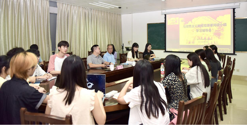 辅导会上,郑保卫教授还结合自身求学经历与学术研究,从马恩革命友谊、马克思主义早期在中国的传播讲到马克思主义新闻观的发展前景与理论体系,让同学们对马克思主义新闻观有了更加深入的了解与感悟。他鼓励同学们要充分利用好马克思主义新闻观书屋资源,以马新观原著阅读小组为抓手,通过集体讨论、分散学习、小组分享等形式推进自身学习,坚持用马克思主义新闻观铸魂励志。