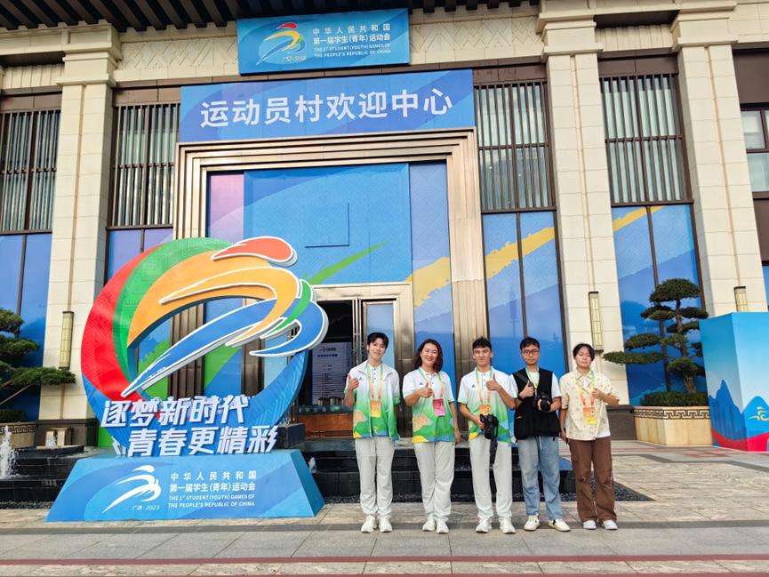 接着,探访队乘坐观光车来到运动员餐厅。餐厅门口,身穿壮族服饰的工作人员笑容可掬,迎接每一位进入餐厅的客人。进入餐厅,最先映入眼帘的是两面“友谊签名墙”,墙上不仅写满了来自全国各地的运动员签名,还写有“加油必胜”、“友谊第一,比赛第二”等话语,充分体现了全国各地运动员的竞赛热情和友好的竞赛心态。南宁市执委会青运村工作人员许宁军为大家介绍运动员餐厅,他说道,运动员餐厅就餐区共可容纳3850人同时就餐,供餐方式为半自助型供餐,每天18个小时不间断供餐,这可以保证运动员随时都能吃上新鲜热乎的饭菜。再往里走,能够看到各种地方风味的食堂窗口,运动员可以根据自己的口味和习惯来选择合适的菜品。许宁军依次介绍了广西风味、晋鲁风味、苏浙风味等区域的美食。其中,还特别设有清真餐厅,阿西木江为大家介绍了清真餐厅的各种菜品,他表示,餐厅准备得很周到,充分考虑到了运动员的不同需求。餐厅服务人员积极热情,在此用餐的运动员表示“对餐厅感到很满意,菜品都很丰盛、很好吃”。