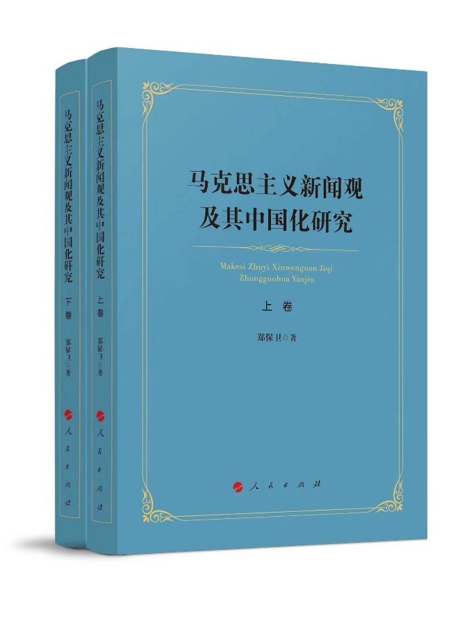 郑保卫教授所著《马克思主义新闻观及其中国化研究》一书,是一部展现马克思主义新闻观及其中国化和中国共产党百年新闻思想与实践的理论著作。该书收录了作者自1981年研究生毕业40多年来所发表的研究马克思主义新闻观及其中国化进程的相关论文60篇(含两篇访谈文章)。全书分为上下两卷,共七编,总字数90万字。该书作为中国人民大学“中央高校建设世界一流大学(学科)和特色发展引导专项基金”资助成果,于近期由人民出版社出版。