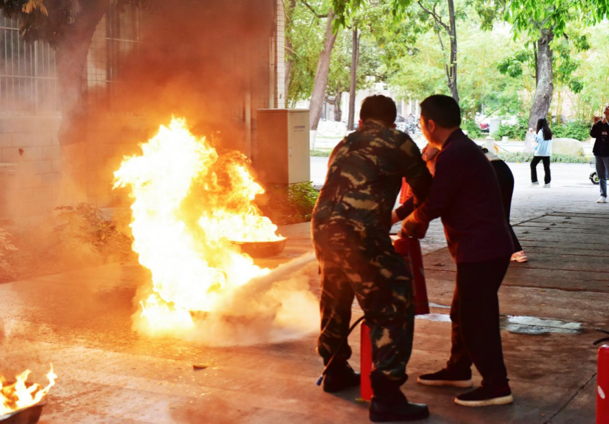 黄光电根据演练情况进行小结,指出存在的不足,进一步巩固师生的消防知识。随后,他亲自示范如何正确使用灭火器和水带,并指导师生动手实践。