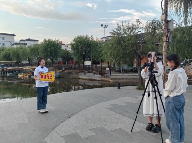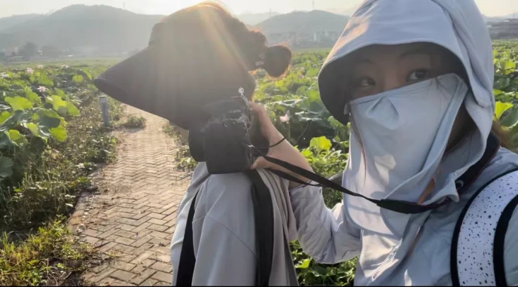 抵达“荷美覃塘”后,团队分别于“醉莲阁”、“陆绩码头”、“莲心广场”“万亩荷田”进行堪景、拍摄。炎炎夏日,炽热的阳光烘烤着大地,但同学们热情不减,坚持投入拍摄工作。俯身躬行,脚踏实地,团队成员们真正践行脚力、眼力、脑力、笔力,以期达到最佳拍摄效果,在润物无声中弘扬清正廉洁的传统美德,助力青年学子涵养克己奉公、清廉自守的精神品质。
