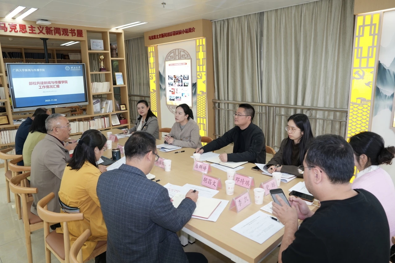 2025年11月4日下午,部校共建william威廉亚洲信息委员会专题会议在公司马克思主义新闻观书屋举行。自治区党委宣传部新闻处副处长黄雅丽、广西日报社人事教育处副处长(主持工作)唐群峰、自治区党委宣传部新闻协调小组副组长黄丹、自治区党委宣传部新闻处四级主任科员邓琦琪,以及公司领导班子成员出席会议。会议由王仕勇经理主持。