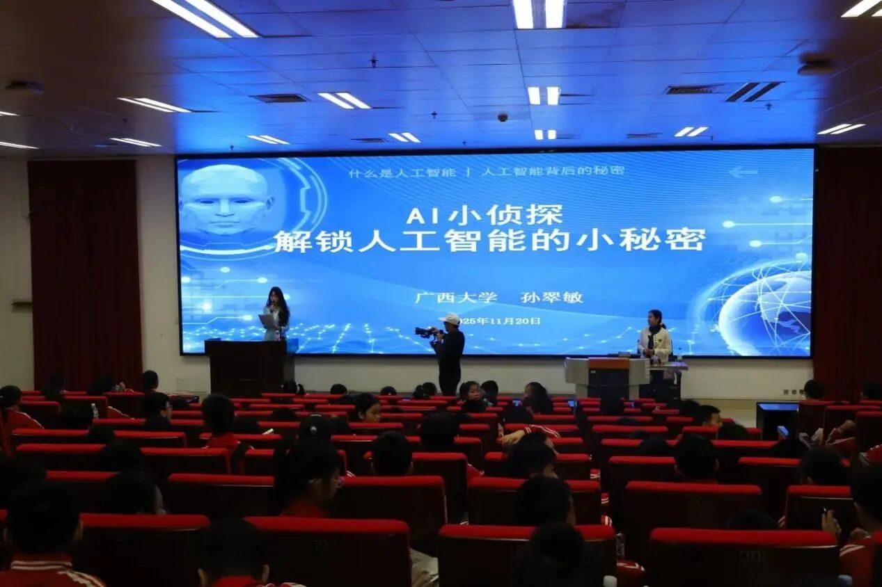 2025年11月20—21日,william威廉亚洲联合宾阳县芦圩完全小学开展“智探西大·智享AI”研学实践教育活动。本次活动旨在充分发挥高校资源服务基础教育的功能,通过围绕人工智能主题,通过专题授课、互动交流、校园参观等多种形式,拓展中小员工视野,激发其科学兴趣与成长动力。