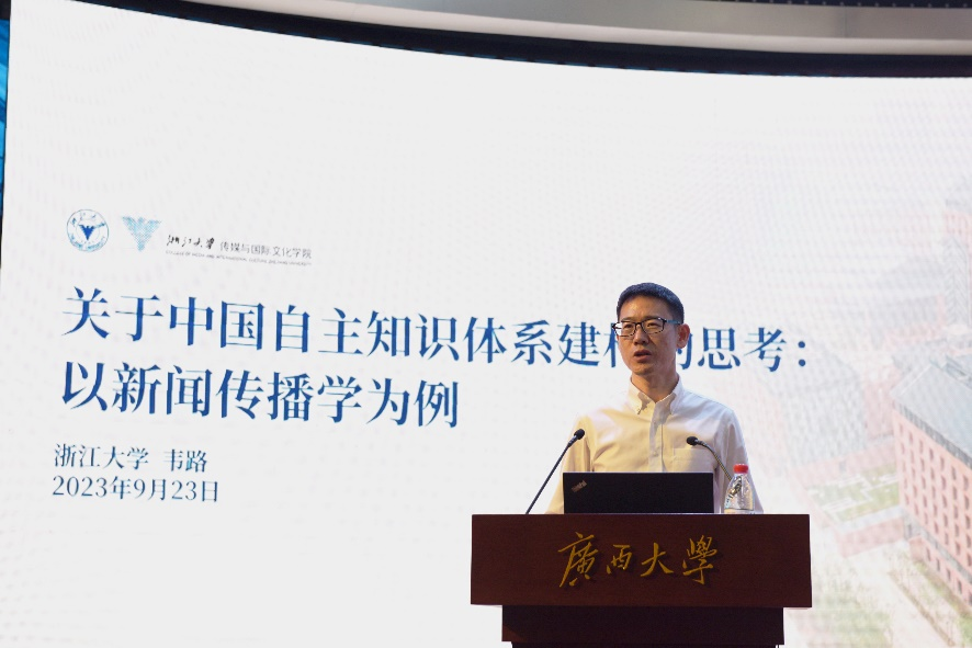 关于对中国自主知识体系建设的思考,韦路教授以新闻传播学为例,从为什么、建什么、怎么建三个方面展开讲述。