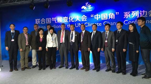 图为参加气候大会传播边会嘉宾合影
