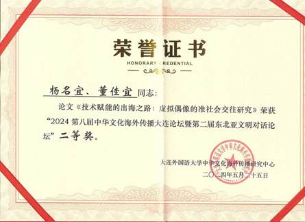 5月25日,第八届中华文化海外传播大连论坛暨第二届东北亚文明对话论坛在大连外国语大学举行,公司助理教授杨名宜博士和指导的2023级硕士研究生董佳宜应邀参会并作学术发言。
