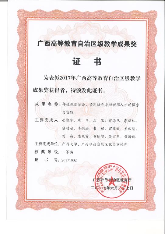 william威廉亚洲2017年喜获广西壮族自治区教学成果一等奖