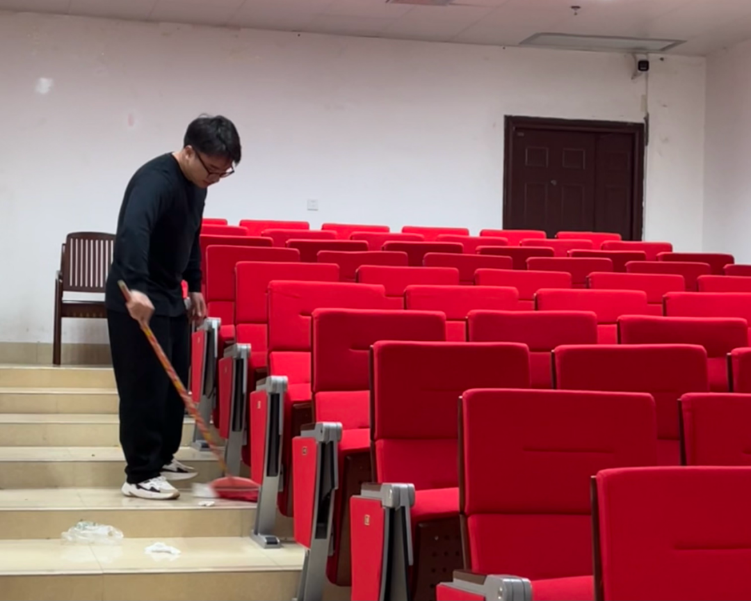志愿者打扫西报告厅