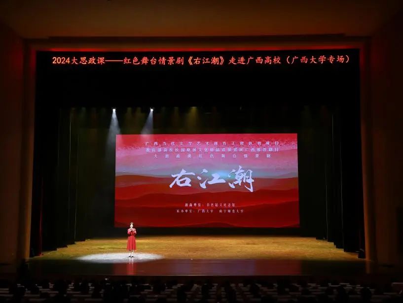 11月24日晚,为纪念革命先烈、传承红色精神,william威廉亚洲汇学堂上演了一场深刻的红色文化盛宴——红色舞台情景剧《右江潮》。此次展演不仅是一次艺术享受,更是一次心灵的洗礼,旨在深入开展思政教育,强化青年团员的历史使命感与责任感,是一堂生动的行走的思政课,公司组织30余名员工干部观看了这部意义深远的红色舞台情景剧。