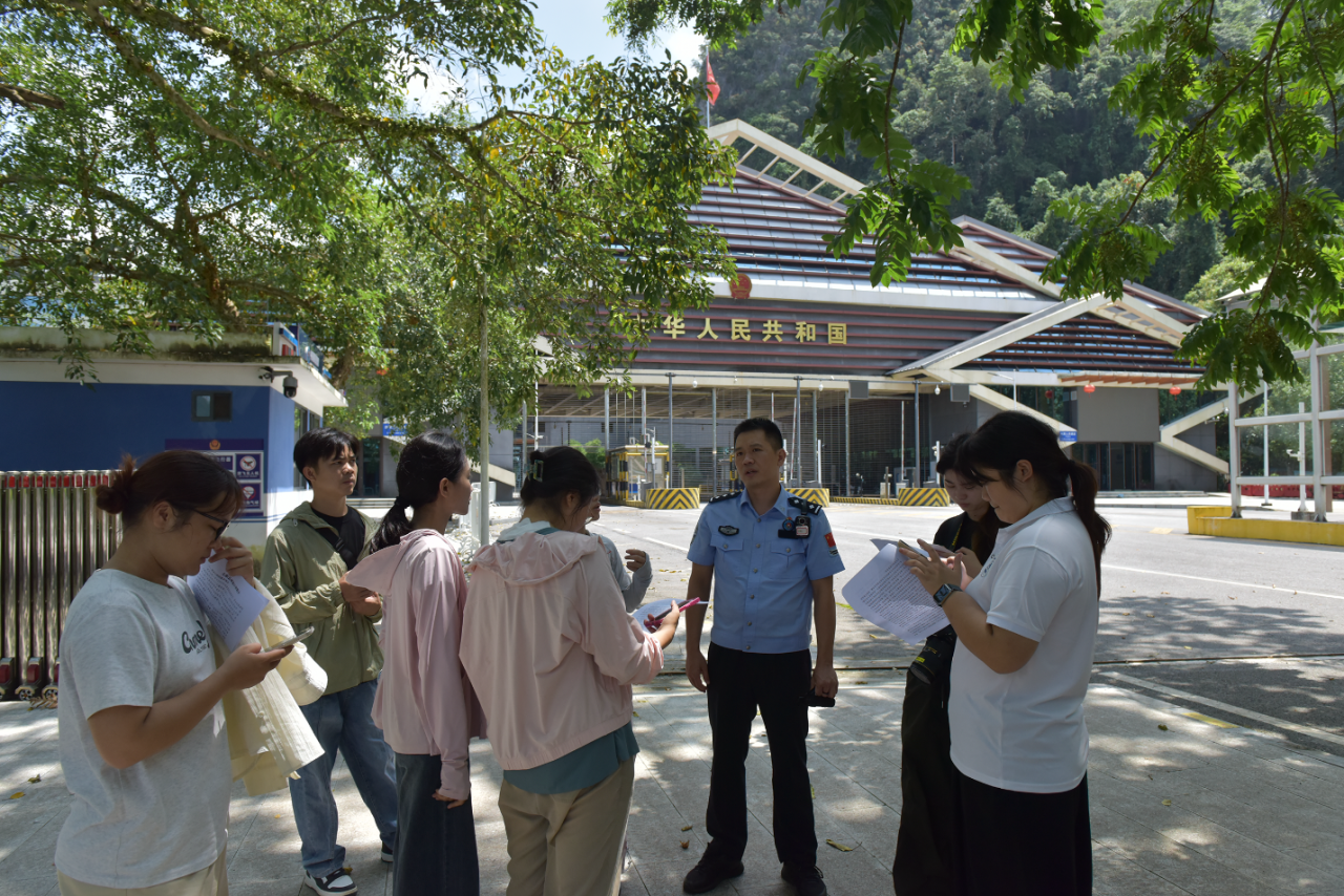 在硕龙口岸,师生们和口岸工作人员深入交流,了解口岸在中越经贸、旅游、人文等领域的合作情况,感受大新作为边疆地区的开放与活力。