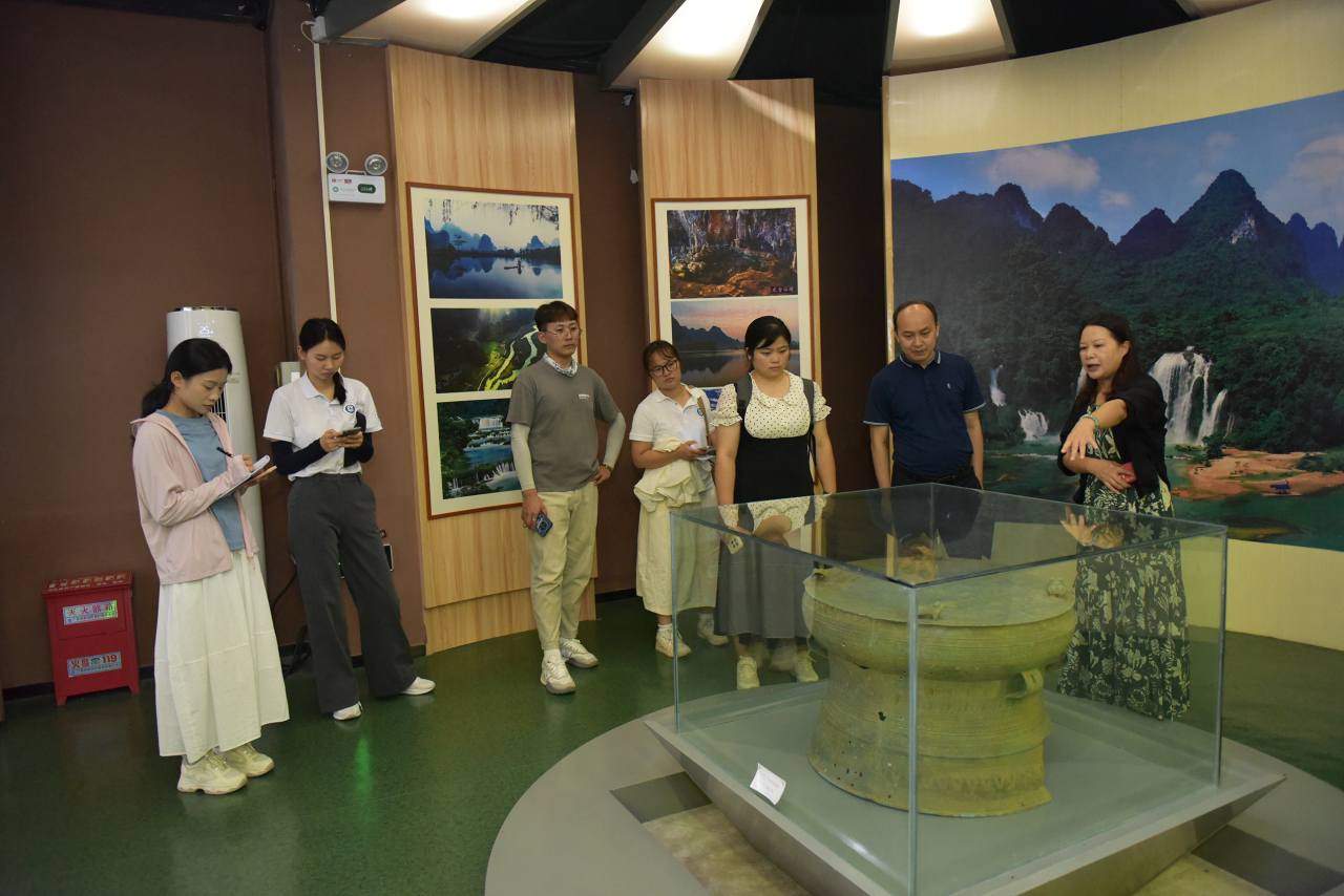 随后,调研师生走进大新县博物馆,在许海萍副馆长的讲解下,师生们通过馆藏文物、图文展板及民族文化实物,了解了大新历史与民族文化,尤其对当地深厚的土司历史文化有了深入的认识。