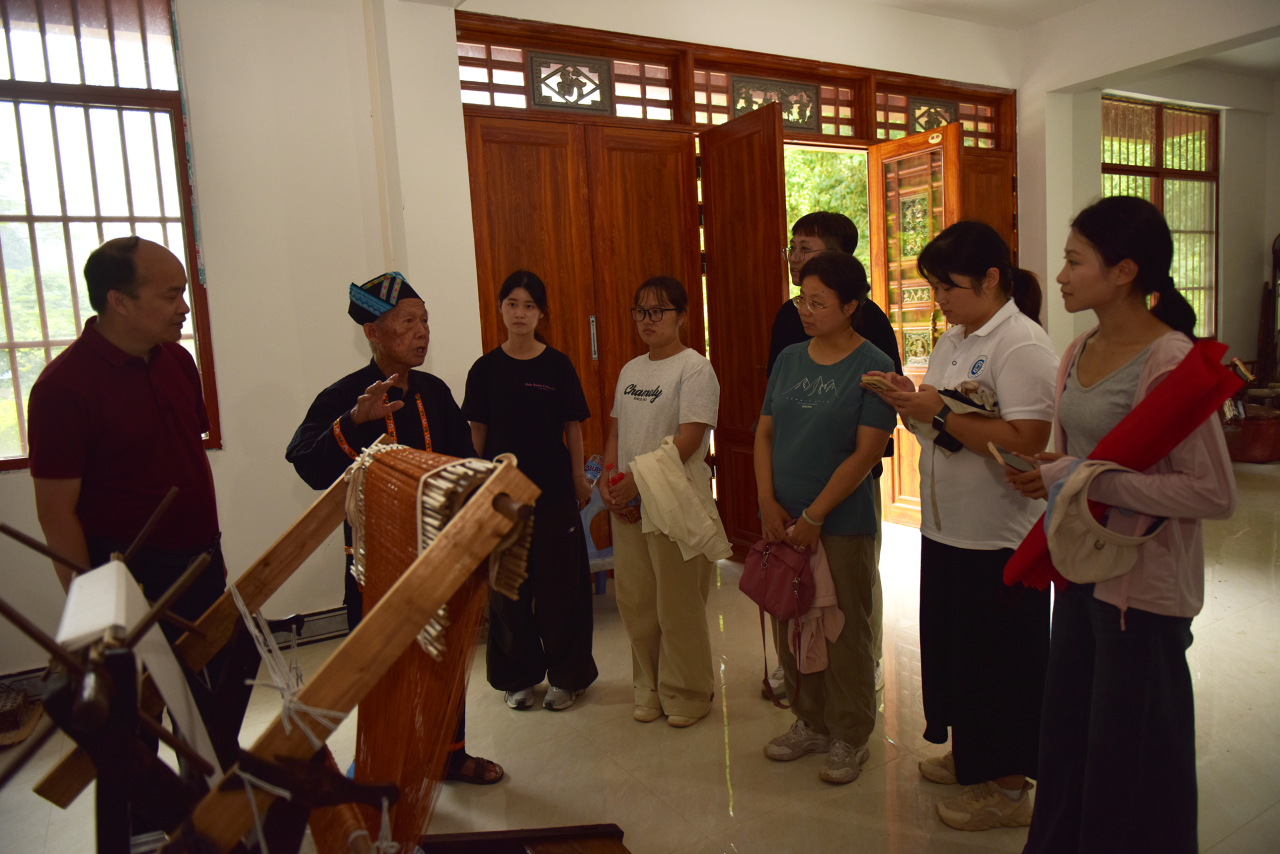 84岁的自治区级非遗传承人农廷兴向师生讲述了自己坚守壮族服饰技艺传承54年的经历,通过“传帮带”培养徒弟让传统非遗技艺在年轻一代中延续。访谈尾声,农廷兴与两位壮家妇女即兴唱起送别的山歌,为此次调研画上圆满句号。