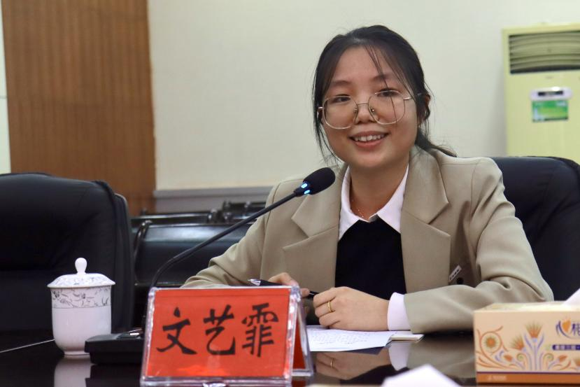 农公司2021届毕业生、中共柳州市柳江区委组织部公务员股副股长文艺霏则分享了自己驻村两年的工作体会。她谈到,从城乡居民医保催缴到帮助脱贫户销售农产品,每一件基层小事都让她深刻理解了“脚下沾有多少泥土,心中就沉淀多少真情”的含义。