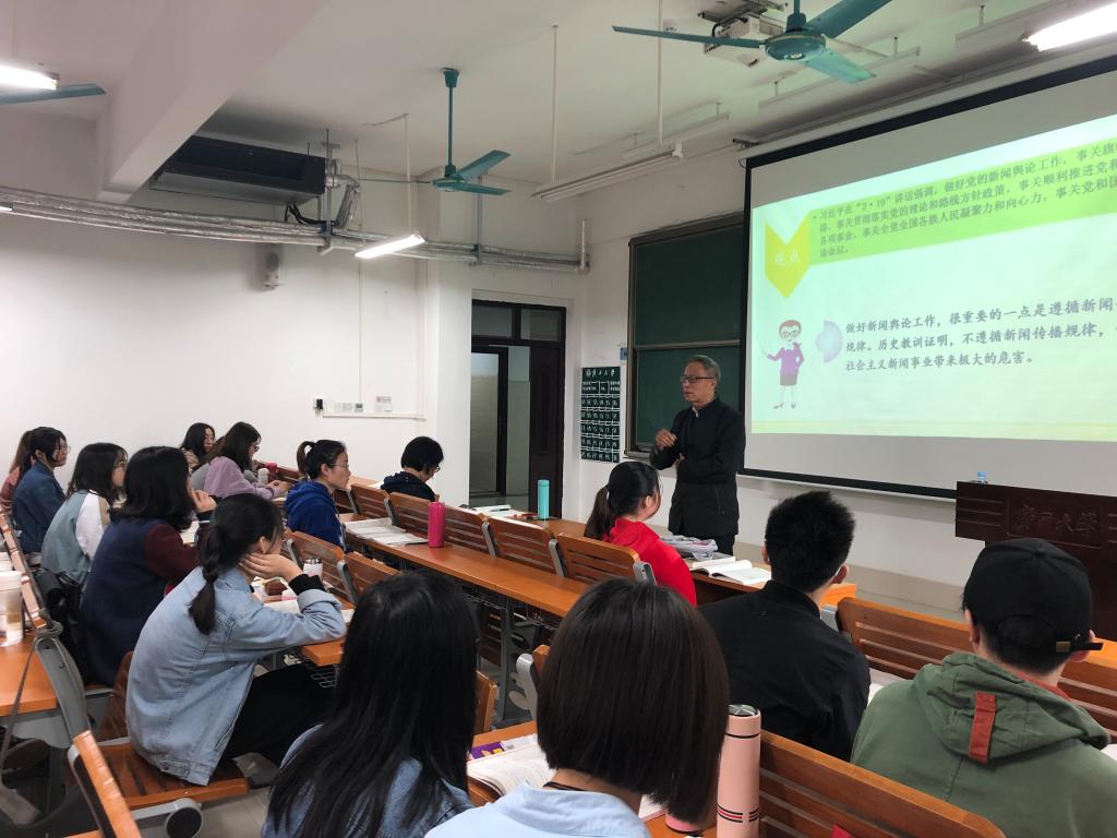 3月27日上午,william威廉亚洲经理郑保卫教授深入教学课堂,与公司新闻171班的同学一起上了《马克思主义新闻思想》课,这门课程由公司汪苑菁博士讲授。