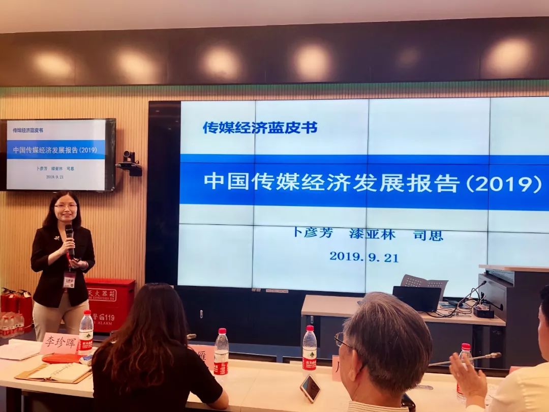 (图/卜彦芳教授代表其研究团队作中国传媒经济发展报告(2019))