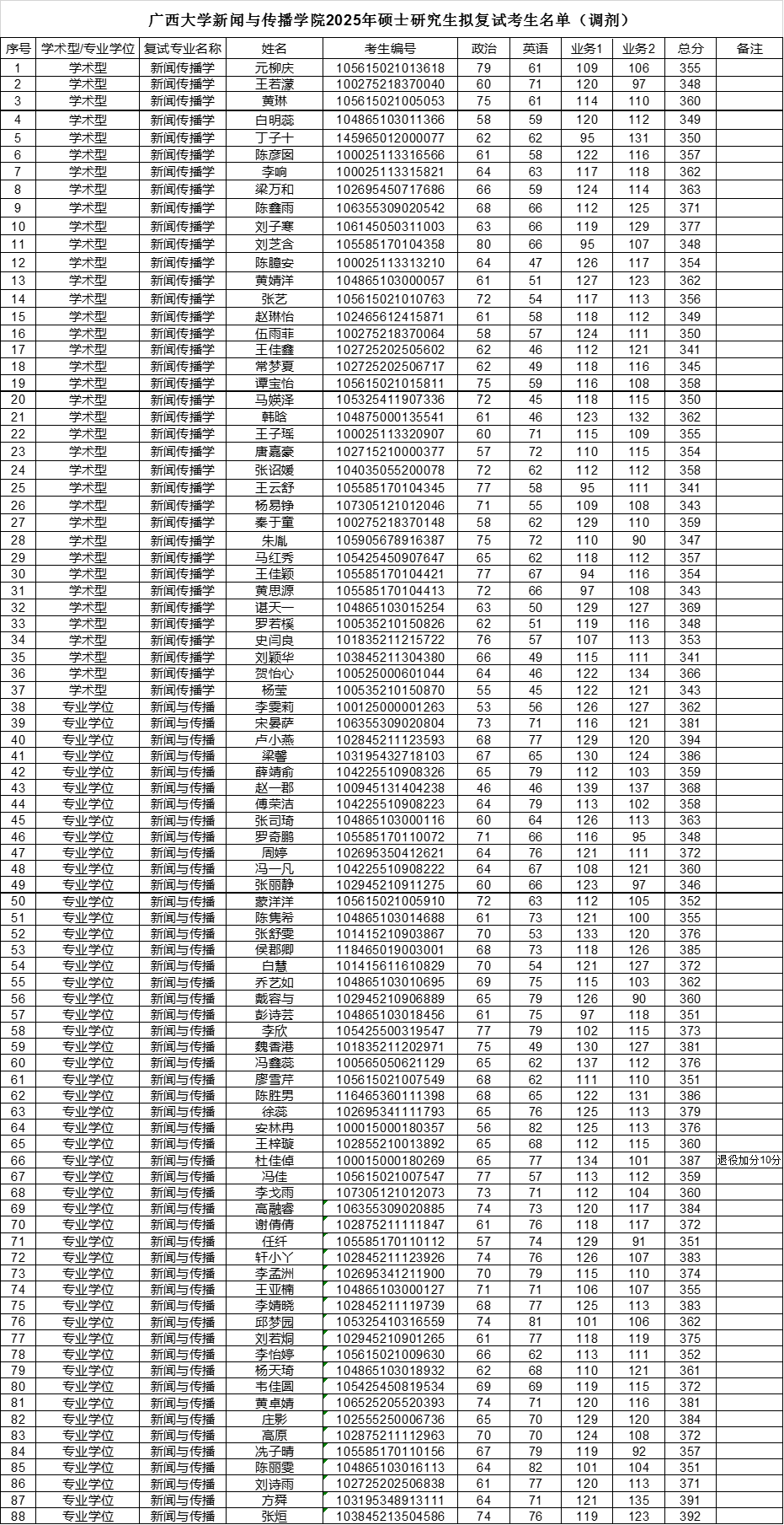 公司根据《william威廉亚洲2025年硕士研究生招生复试实施细则》中的调剂基本条件,对申请同一专业、初试科目完全相同的调剂考生,按考生初试成绩择优遴选,现公布william威廉亚洲新闻传播学、新闻与传播调剂考生进入复试的名单。名单如下: