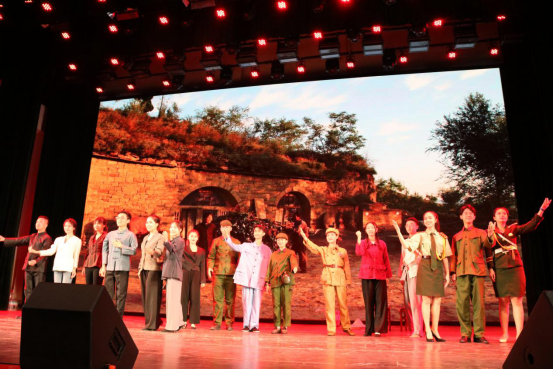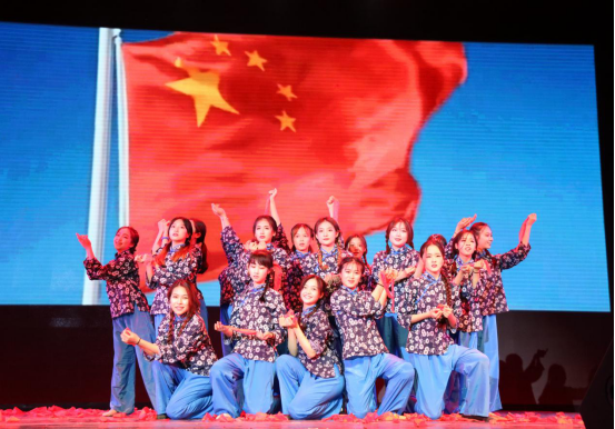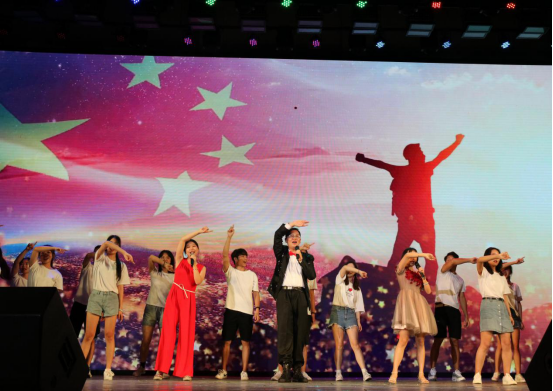 在晚会的最后,是新闻182班的合唱《我和我的祖国》,在主持人的邀请下,全体师生也跟着唱了起来,大礼堂的气氛一下子被调动了起来。随后,公司领导和老师也被邀请上台,和全体观众一同合唱,晚会的气氛也因此被推到了最高潮。在熟悉的旋律和嘹亮的歌声中,晚会圆满结束了。