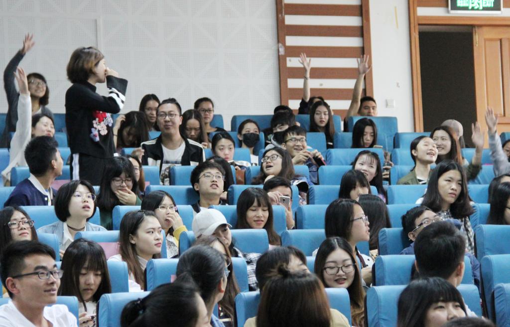 在接下来的有奖问答环节中,伍禄香老师还为同学们带来了自己的签名书籍, “2017年4月23日是第几个世界读书日?”、“《娱乐至死》的作者是谁?”等等一系列跟阅读相关的问题抛出,同学们争相回答,“几个回合”下来,六名同学获得了签名书籍。