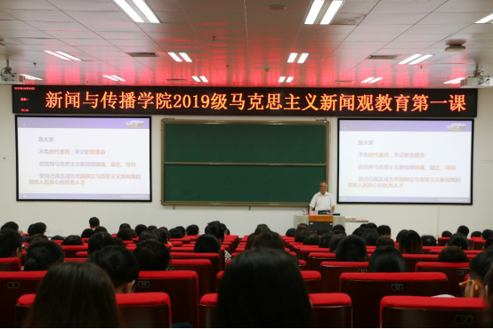 会上,郑教授结合今年三月份出版发行的第一本马克思主义新闻观统编教材《马克思主义新闻观十二讲》向在座师生进行讲解,让新生初步建立马克思主义新闻观的理论框架和知识体系。